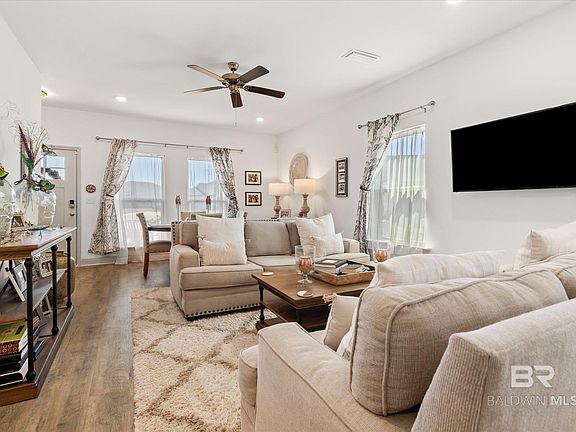 Welcome to your dream home in the heart of Daphne's beloved St. Augustine community. This 2-story home was built in 2023 and was tailor-made for families seeking comfort, space, and a touch of Southern charm. With two generous family rooms, one on each floor, there's plenty of room for everyone to spread out and enjoy. The primary suite is on the main floor, where your private retreat awaits, complete with a full bathroom featuring a double vanity, a sleek shower, and a walk-in closet. Whip up your favorite recipes in an open kitchen with granite countertops, an undermount sink, and top-of-the-line stainless steel appliances. Enjoy the convenience of soft-close cabinet doors and luxury vinyl plank flooring throughout the main areas, with cozy carpeting in the bedrooms. The second floor boasts a spacious living area, three additional bedrooms, two full baths, and a handy laundry room. Stay connected and secure with a smart home package with a video doorbell camera and a touchpad front door lock, all controllable from your smartphone. This home was built to last with a GOLD fortified roof, four-sided brick on the first floor, and durable Hardie board on the second. Best of all, you can't beat the location. Nestled on a private cul-de-sac, your backyard offers a large enclosed deck with a beautiful wood-burning, stone surround fireplace and overlooks the serene views of majestic trees, providing a peaceful retreat after a long day. Located only 10 minutes from the Easter Shore Shopping Center and 25 minutes from Mobile. You don't want to miss out on this perfect blend of modern living and Southern hospitality. Schedule your tour today and make this house your forever home! Listing agency makes no representation of the accuracy of any information deemed important. Buyers agent to verify. Buyer to verify all information during due diligence.