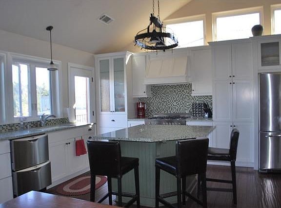 Environmental friendly built home. Built with safety and economy in mind. From the No-Formaldehyde in the insulation (garage is also insulated), tankless water heater, dual floor thermostats for a/c and heat, dual flush toilets, Bamboo flooring thru out, a mud room arT entrance to keep heat or cold out, and Trek decking (maintainance free). Home comes with gas generator to always keeping lights and (Energy Star appliances) on during power outages. Windows are low e facing only the morning sun, Wood burning fireplace insert generates heat for the whole upstairs. Recycled glass counter tops in kitchen with soft closed drawers, Dual dishwasher, and a Bertazzoni 5 burner range tops off this 1600 soft home which has Lake Rights and landscaping includes sprinklers.