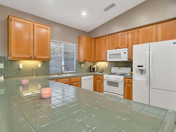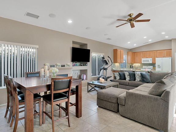 This wonderful home is located in the community of Verano in Cathedral City, California. It sits on a corner lot with a beautiful view of the mountains from the front patio. The moment you enter the home you're met with a very spacious great room with vaulted ceilings that's great for entertaining. The kitchen is open and bright with plenty of cabinet space, a pantry and tile counters and features a newer Kenmore Elite dishwasher and a newer Kenmore Elite refrigerator. There's three bedrooms, two full baths and a powder room. There's a lovely front porch, a covered courtyard area plus an additional patio in the back that has a beautiful view of the mountains to the west. The 2-car garage is located off an alley that's designed specifically for entering and exiting the garages in the community. The home is conveniently located on the north side of Cathedral City with close access to the I-10 freeway and within walking distance to Rio Vista Elementary School and the newly renovated community clubhouse, gym, pool and other community amenities. Verano is conveniently located within driving distance to the Empire Polo Club, home to the Coachella Valley Music and Arts Festival, and the Stagecoach Festival; and the Indian Wells Tennis Garden, home to the BNP Paribas Open.