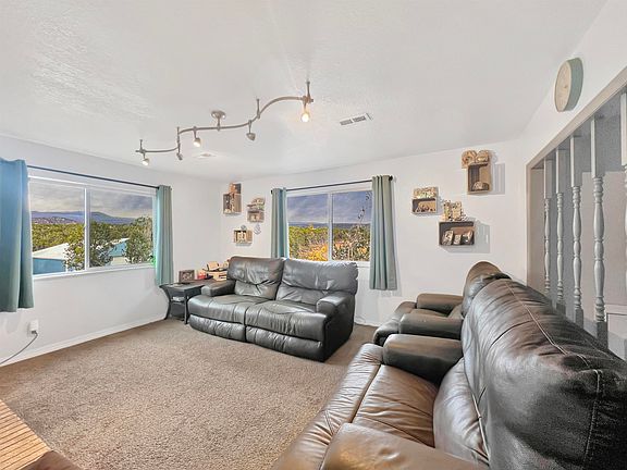 his spacious 3 Bed, 2 Bath split level gem is nestled in a peaceful, rural setting with beautiful mountain views and dreamy sunrises. This convenient property offers a perfect blend of privacy and convenience. Tucked away in the trees of Cedar Mesa, yet located just 4 miles from the lovely town of Cedaredge. In addition to the three main bedrooms, there is a separate space with it's own private entrance that is currently used as the 4th bedroom. It could easily be converted back into a private office space or turned into a cozy mother-in-law suite, offering the new owners ideal flexibility. The home features both a comfortable living room on the main level and a separate family room in the lower level, giving ample space for relaxing and entertaining. The open concept, eat in kitchen is perfect for hosting with ample cabinet and counter space. Directly off the kitchen, you step outside onto the spacious back deck, complete with lighting, a ceiling fan, and surrounded by the serenity of the woods, ideal for evening gatherings. In addition to the attached 1 car garage, the property boasts a massive detached garage/shop, previously used as a commercial building. The shop features 14 foot side walls, in floor heating, on-demand hot water, built in cabinets, an attached bathroom and it's own DMEA power meter. Two built in air compressors are also included in the sale.This space is perfect for running a business, creating a second home, or customizing it to fit your creative needs. Also included is an RV Pad with full hookup capabilities and a 1,000 gallon vault septic tank. Wildlife enthusiasts will love the frequent sightings of turkeys and deer in the quiet, private surroundings. This home is a rare find, offering rural tranquility, yet conveniently close to town. Don’t miss out on this versatile and spacious property—perfect for households that are small or large, hobbyists, or entrepreneurs! Additional features include: New exterior water lines from the meter to the home and shop. Primary bedroom has a large closet. New lighting and newer paint throughout. New front door and entryway flooring. New flooring in the office space. New supportive HVAC shelving. New exterior LED motion lighting. New pellet stove downstairs for cozy winters. Come take a peek at this unique space!