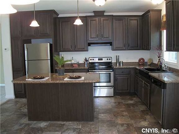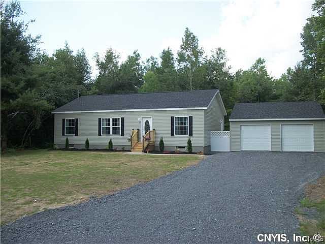 Brand new construction! Just a few miles outside the City of Watertown, NO CITY TAXES; City water and sewer! Also the seller has purchased a one year Home Warranty Service Agreement for the buyer. This home features open floor plan, 9' ceilings, Master Bed/Bath dbl vanity, walk-in closet(3BD 2BA total);Kitchen cabinets w/crown molding center island,2 pantries, farmhouse sink, stainless appliances, sliding glass door leads to deck w/solar lighting w/private treed back yard, 5' crawl space,2 stall det garage