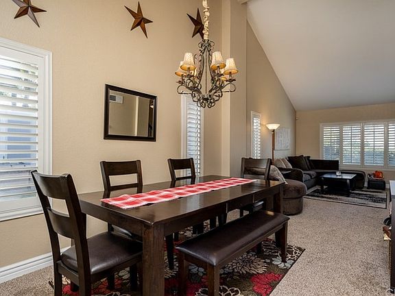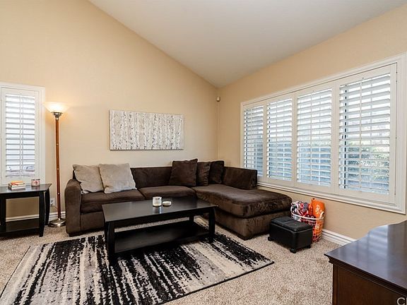 Well cared for and upgraded home in coveted Horsethief Canyon, on a large pie-shaped lot with a huge backyard! As you enter this home you will notice how open it is compared to others of the same model. The fireplace, which is normally between the living and dining areas has been removed to create an open floorplan, and the cathedral ceilings add to the feeling of openness. There is new carpet throughout, and tile flooring in the kitchen and bathrooms. Downstairs this home features a convenient half-bath, and plantation shutters. The upgraded kitchen with gorgeous granite countertops and upgraded distressed-look cabinetry, stainless appliances and recessed lighting. Upstairs you will find a total of 3 bedrooms and 2 full bathrooms, with a nice view of the hills and mountains out of each bedroom window. The master bedroom features vaulted ceilings, a spacious closet, and an en-suite bath with his and her sinks. This home has great entertaining potential- the driveway fits 4 cars, and the large & private backyard features a built-in bbq, beautiful hardscaping/landscaping and a ton of patio space to enjoy with family and friends. The amazing amenities include several parks, 2 olympic sized pools & spas, dog park, soccer & baseball fields, tennis, basketball & volleyball courts, stationed running trails, playgrounds, and a clubhouse & fitness facility. Horsethief Canyon also has some of the lowest tax rates in Corona with no mello-roos, and has a highly rated K-8 school!