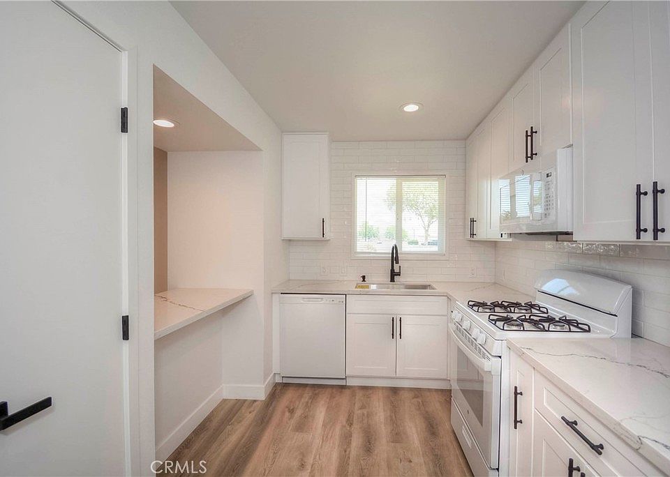 Don't miss this opportunity! 55+ senior home, A brand-new condo in Sun City is ready for you to move in today! This charming, newly built home features a spacious one-bedroom, a full bathroom, and an oversized one-car garage. It boasts luxury vinyl plank flooring throughout, recessed ceiling lights, and a bright, open kitchen with stunning quartz countertops, white cabinets, a stainless-steel farmhouse sink, and white appliances, complete with bar seating. The living room is generously sized, and the bathroom includes a quartz countertop and an upgraded tile shower with a door. The large bedroom has a mirrored closet door and opens to the patio through a sliding glass door. With a brand-new furnace and water heater, everything in this condo is completely new. The Sun City Civic HOA provides great amenities like a pool, spa, sports courts, and more. It's conveniently located near civic center facilities, freeway access, and shopping.