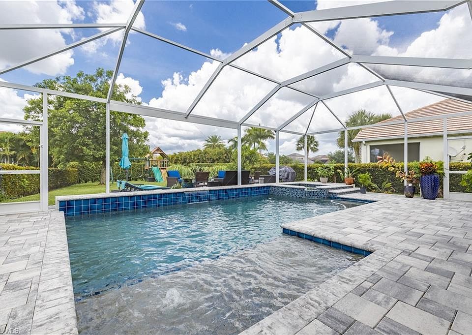 Spacious 2503 SF 2 story 4 bed +den, 2.5 bath home sits towards the end of a cul de sac in one of Cape Coral's most sought after communities-Sandoval. Enjoy the Southwest Florida lifestyle at your private NEWER pool and spa PLUS a built in patio and fire pit in your private backyard. Inside, this home boasts expansive bedrooms all located upstairs with ample closet storage throughout. The main living area is inviting from the moment you enter the screened entry and showcases a den as you enter that then flows into your great room style kitchen with large eat in area and living room. Enjoy the view of your lanai and backyard oasis through 2 sets of sliders. A pool bath and laundry room completes the functional living space on the first floor. Sandoval is a vibrant active community with something for everyone including a gorgeous Community Pool and clubhouse with resort style amenities plus dog parks, kids playground, volleyball, fishing pier, tennis courts, and MORE! Don't miss your opportunity to live the Sandoval lifestyle! Pet friendly and gated too! Call today to schedule your personalized home and community tour before this one is gone!
