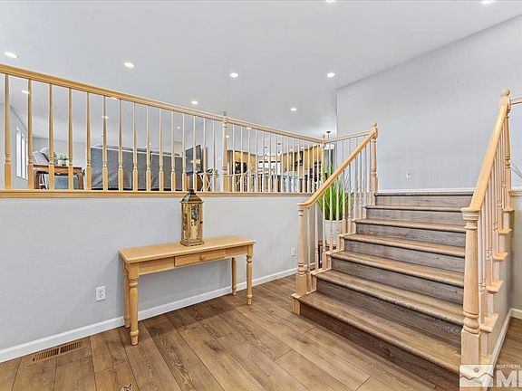 This Caughlin Ranch custom-built home, meticulously crafted and designed by the sellers, offers a captivating blend of contemporary style and luxurious comfort. Recently renovated in 2021, the residence exudes sophistication with its dramatic upgrades and distinctive finishes. It has a warm, inviting, open, and flowing floor plan that is filled with beautiful new flooring throughout most of the home., Upon entering, you're greeted by the allure of new luxury laminate wood flooring, seamlessly flowing throughout the home. These floors not only elevate the aesthetic appeal but also ensure durability and ease of maintenance, providing a perfect canvas for modern living. The heart of the home, the kitchen, is a true masterpiece. A focal point of elegance and functionality, it features a sprawling center island that commands attention and serves as a gathering place for family and guests alike. Adorned with sleek quartz countertops, this culinary haven exudes a sense of luxury and sophistication. Complemented by dual sinks and state-of-the-art black stainless steel appliances, including a range, refrigerator, and dishwasher, the kitchen offers both style and practicality. In addition to its aesthetic appeal, this custom-built beauty includes functional enhancements designed to elevate your lifestyle. Whether you're entertaining guests in the spacious living areas, unwinding in the serene bedrooms, or enjoying the outdoor space. Located in the desirable Caughlin Ranch community, renowned for its scenic beauty and convenient amenities, this home offers a rare opportunity to experience the epitome of upscale living in Reno. With its unparalleled combination of timeless elegance and modern convenience, this property truly represents a haven for those seeking the pinnacle of residential luxury.