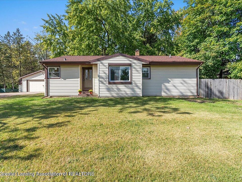 Welcome home to this turn-key home located at 2677 Grovenburg in HOLT SCHOOLS! This 2-3 bedroom 2 full bathroom ranch sits on over ½ an acre of property and has been extremely well maintained. The Seller has done a lot of upgrading to the home during his years of ownership. Upgrades include all brand new Hanson windows with a lifetime transferable warranty, newer appliances, roof and blown-in insulation in the attic (2017), hot water heater (2020) central air unit and furnace (2019), spray foam insulation in the basement, new gutters and gutter guards, hardwood floor refinishing, and months of landscaping clean-up! As you walk in you are greeted with beautiful hardwood flooring original to the home. Sit in the living room and enjoy the beautiful views of the private backyard through the large picture window. The living room pools into the dining area and pantry. The kitchen is beautifully updated with stainless steel appliances, quality oak cabinetry and a large window that allows plenty of natural light to pour in. Down the hall you will find two spacious bedrooms with large closets. The master bedroom features a walk-in closet and master en-suite with a gorgeous walk-in shower that was recently renovated. The hallway bathroom includes a tub/shower combination. Downstairs you will find plenty of storage space - or a blank slate for you to add additional square footage! The flex room downstairs just needs some additional finishing touches to be considered a legal third bedroom (door & flooring - egress window already installed!).. Enjoy the long driveway with a gravel pad next to the large garage - great for parking an RV, trailer, etc. The garage is extra large and equipped with workshop benches and shelving. The garage is extra deep and is prepped for a wood stove. The garage has a separate electrical meter as well. The backyard is partially finished with a wood privacy fence and features a separate shed for additional yard tools. Immediate occupancy available!