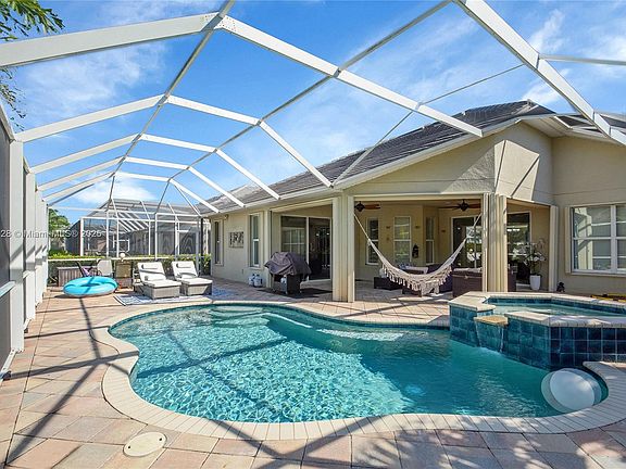 SANDOVAL gated enclave corner property 3 BR + Den, 2.5 BA. Marble floors throughout, 2 living rooms, den, kitchen with stainless appliances, large island, and pantry. Primary suite with walk-in closet & dual sinks. Screened lanai with pool + spa waterfall. Laundry room, 2-car garage. Gated Sandoval Community offers lawn care included plus gated security, clubhouse, fitness center, resort pool with slide, tennis, pickleball, basketball, volleyball, bocce, shuffleboard, dog parks, fishing lakes, and miles of walking trails. Priced to sell.
