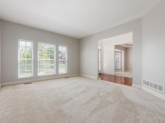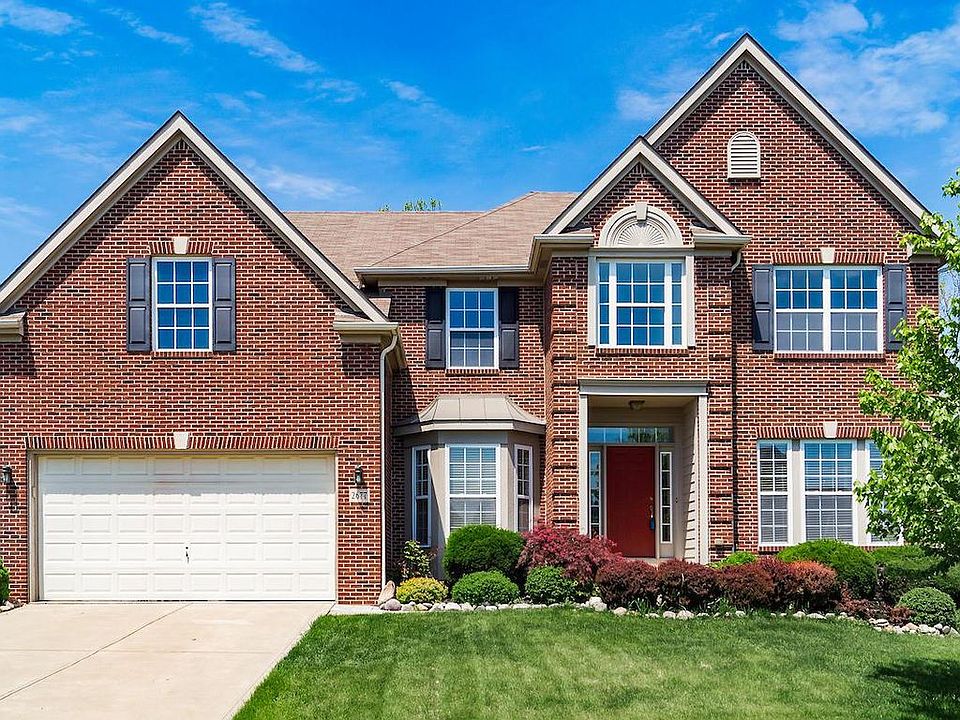 Exceptional Trinity built two story home sitting on private ravine lot in TOP RATED Olentangy school district!. Pristine home with brick front, concrete driveway leading in to open two story entry, formal living & dining rooms, HUGE Great Room with rear wall of transom windows flanking gas log fireplace. First floor den, fully equipped kitchen with stainless steel appliances, over-sized center island, walk-in pantry, and first floor laundry and half bath. The private master suite is impressive: with tray ceiling, triple windows across rear of the room, private master bath with garden tub, separate shower, double vanity and two large walk-in closets. Don't miss the full block basement with r/I for 3rd full bath. This home has been well-maintained and is MOVE IN READY!