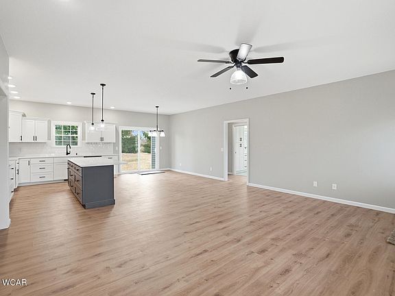 NEW CONSTRUCTION - Ready to move into. Beautifully detailed inside and out. The exterior front hosts a covered porch with stone accents. This home is a spacious 3 Bedroom, 2.5 Bath ranch with an open concept and split bedroom design. Immerse yourself in the splendid great room/kitchen/dining area which offers amazing natural lighting, waterproof laminate flooring, and patio doors to the 6x31 covered patio and back yard. The large kitchen offers bright, white soft close cabinetry, center island, and quartz counters complemented by black hardware and fixtures. Not to be missed is the large walk-in pantry with shelving and natural light. Lighting fixtures are on trend throughout the house. The main bedroom is substantial with walk-in closet and a bath offering dual onyx vanities, dual linen closets, make-up vanity w/multiple outlets and fantastic walk-in shower enclosure. There is a sizeable utility room with utility sink and storage cabinetry. There are several closets throughout the home for comfortable, easy storage. Taxes are for lot only, have not be billed on home. HOA fee includes street lights, weekly garbage pickup, and maintenance of the pond and common areas.