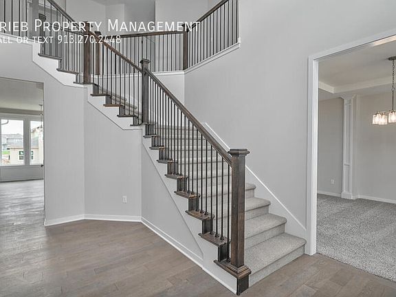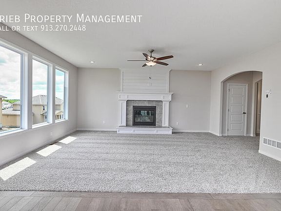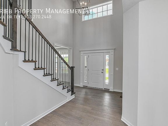 The Harlow 5 - A spacious 5-Bedroom Home with Elegant Upgrades in a Great Location! Welcome to your new home! This beautiful and thoughtfully designed house offers 5 bedrooms, 4 full bathrooms and a first floor room that's perfect for a home office or additional bedroom. Step through the two-story vaulted entryway and into an open concept great room, kitchen and breakfast area, ideal for relaxing or entertaining. The kitchen features a large center island with bar-height seating, a walk-in pantry, stainless steel appliances and stunning granite countertops. You'll also love the upgraded tile backsplash, custom cabinetry, new blinds and dry bar connecting the great room to the dining area. The main floor includes hardwood flooring throughout the entry, kitchen, breakfast area, and mud room. You'll also find a handy boot bench and entry closet to keep things organized. Upstairs, the spacious master suite is your private retreat, complete with a luxurious jetted tub, walk-in tile shower and direct access to the laundry room through the walk-in closet. All upstairs bedrooms feature vaulted ceilings and private access to bathrooms offering comfort and privacy for everyone, including your pets. Additional highlights include: Custom tile fireplace with wood trim in the great room Raised granite vanity tops in master and first-floor bathrooms Tile flooring in all bathrooms and the laundry room with washer and dryer hookups included Berber carpet on the stairs Covered patio and sprinkler system for easy outdoor living New blinds and garage door opener included Located near West Market, Olathe West High School and Lake Olathe, you can enjoy both local convenience and outdoor recreation. The HOA also grant accessibility to the neighborhood pool, trails and playground. Don't miss out on this spacious and stylish home! *Owner is responsible for lawn care