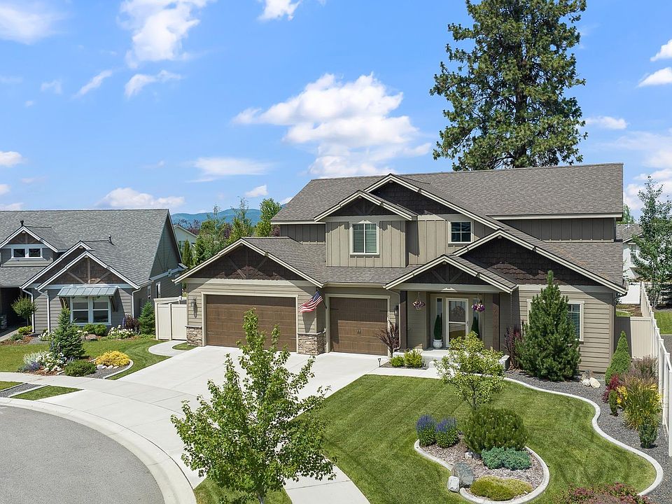 A rare opportunity in the highly sought-after Pine Point phase of Coeur d'Alene Place! This stunning & BETTER than new home represents everything you desire in a home. This 4 bedroom, 2.5 bathrooms, 2,720 SqFt home includes an office, features a huge 4 car garage, gas fireplace, laminate floors, a spacious quartz gourmet kitchen with stainless steel appliances, full tile backsplash, tile master bathroom, and more! Craftsman exterior with Hardi Plank siding, stone accents, carriage-style garage doors, and professionally designed front and backyard landscaping. Centrally located just minutes to schools, parks, an enormous walking and biking trail system, and a variety of local eateries. Don't miss out on this amazing home!