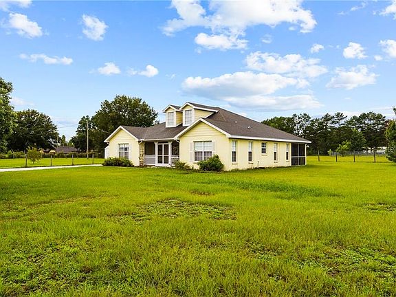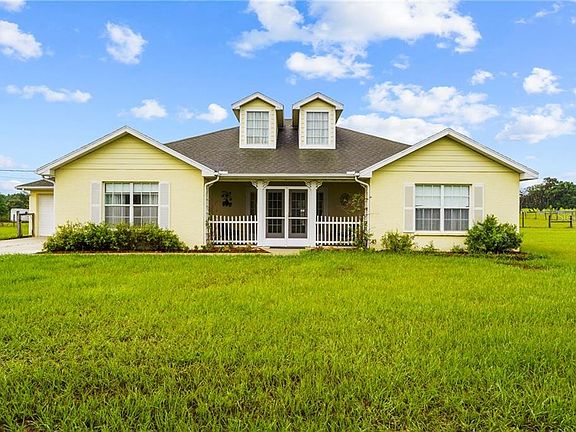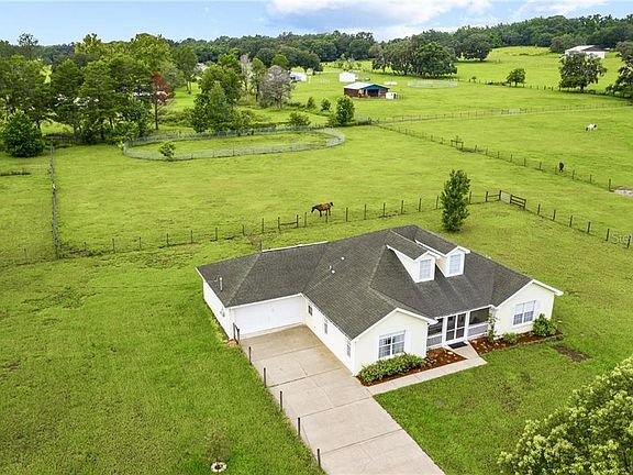 Country Home on 4.8 Acres of Pasture. No-Climb Cross Fenced. Bring the horses and ride the Bridle Path, OR Withlacoochee / Croom trails which are a short drive. Close to I-75 for easy commute to Tampa and Ocala. Enjoy watching your family and animals from the Relaxing Front & Rear Porches or Window Bench in the Eat in Kitchen. Plenty of Wood Cabinets, and counter space in this large Country Kitchen. Living Room features Sky Lights created by the 2 Dormers AND a Pocket Door separating the Guest Rooms from the living area. Master Suite features a Walk-In closet, & Walk-In Shower. Guest Rooms are separated by the Guest Bath. The 3rd Bedroom has a private door leading to the Lanai. Tile floors in Kitchen & Baths. 2 Pastures 2 Paddocks. 20 x 30 Slab accommodates a 20 x 20 Carport with Enclosed Sides and a 20 X 10 work shop attached. . County Living at it's Best! TAXES INCLUDE the 5 acres Lots 60-64 with the mobile & barn, which is NOT part of this sale. Lots will be divided at closing.