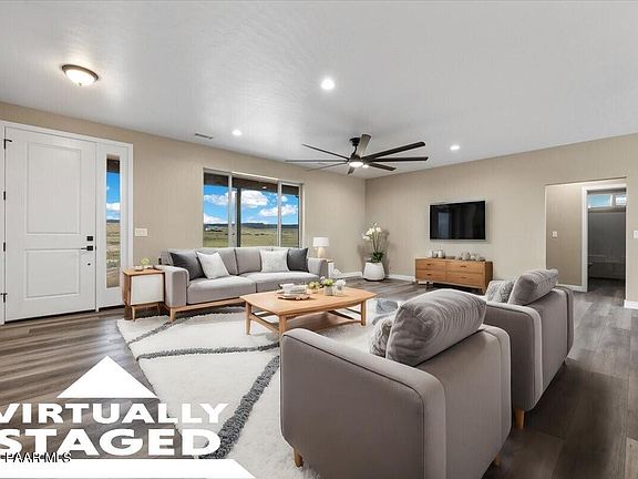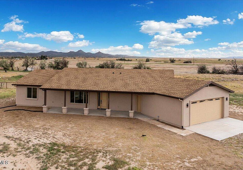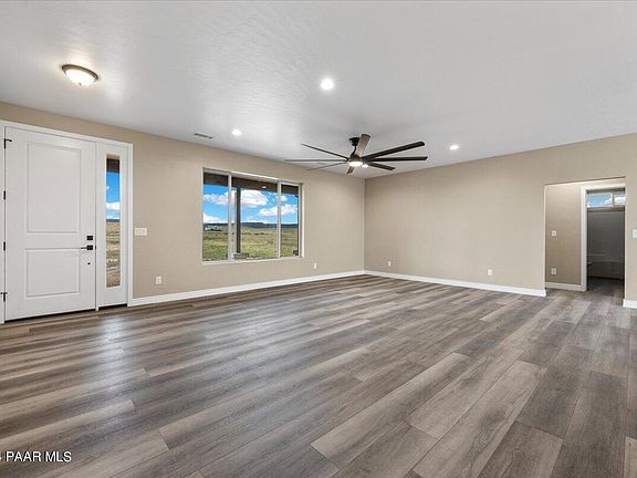 Introducing a spectacular new home, recently completed with high-end 2x6 construction home and desirable spray foam insulation is ready for you to make it your own. Nestled on 2 acres in Paulden, this property offers breathtaking 360-degree views. The well-designed, functional split floor plan features a great room concept with a tasteful combination of luxury vinyl plank & tile flooring & carpeting in the bedrooms. The kitchen has beautiful framed rich dark cabinets, highlighted by thick granite countertops. A walk-in pantry includes power & space for another freezer. The great room is a wonderful gathering space with an 8-ft span ceiling fan. The spacious master bedroom includes a walk-in closet & barn door entry to the gorgeous master bath, which offers a sizable tiled walk-in shower