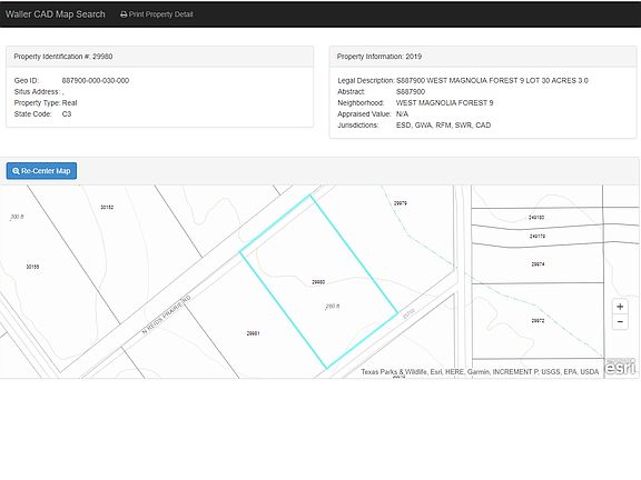 Come and build your dream ranch home in beautiful W Magnolia Forest. 3 Acres located in Waller County, Tx. Hwy 290 is just 17 miles away with shopping, schools and restaurants. Very quiet neighborhood. Property is sold as-is with no Seller representations or warranties. Sale is subject to Buyer's confirmatory due diligence.