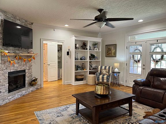 Beautiful Home conveniently located in Hokes bluff. Just off 278 on a dead-end street that only has 5 houses sits this Beautiful full brick Home on an acre lot. Home has 3 bedrooms, 2 bathrooms, Beautiful eat in Kitchen. Recent Kitchen renovation removed a wall between Living room and kitchen for a more appealing open concept. Wood floors throughout. Split floorplan with Primary ensuite off Kitchen. Separate Shower and Whirlpool Tub, separate vanities, walk in closet. Living room w/gas log fireplace. Awesome outdoor space includes a screened in porch, and additional 17x19 covered Porch added to the back, fenced in area for your babies (fur babies too). Metal carport and 2 car ga
