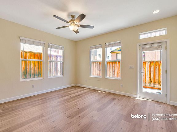 Spacious, light-filled interiors and a versatile floor plan make this 4-bedroom, 3.5-bath San Ramon home a comfortable and functional retreat in a highly desirable location. With an attached 2-car garage and multiple living spaces, it's designed to support both everyday routines and special occasions. The ground level welcomes you with a full bedroom and bath, ideal for guests or a private home office, along with access to the yard. Just one flight up, your family room offers a wide-open feel, anchored by a fireplace and surrounded by plantation-shuttered windows that allow natural light to stream in throughout the day. Wood-look flooring stretches across the space, connecting seamlessly with the adjacent dining area and kitchen. You'll find generous cabinetry and sleek countertops in the kitchen, along with a suite of stainless steel appliances and a pass-through window to help keep conversation flowing while you cook. Upstairs, three more bedrooms - including the primary bedroom and its ensuite bath - surround a flexible lofted area that can serve as a second lounge, play space, or creative studio. A hall bath and dedicated laundry room with washer and dryer keep daily routines running smoothly. Set in a peaceful San Ramon neighborhood, this home places you close to everyday essentials and local favorites. Nearby you'll find Nob Hill Foods, Target, and Costco for groceries, along with casual dining options like Cafe Thyme, Black Bear Diner, and La Hacienda. Christmas Hill Park and Uvas Creek Preserve are just minutes away, offering trails and green space whenever you need a break from city life. *Fireplace is for decorative use only and cannot be used without consent from Belong. *Our homes come as-is with all essentials in working order. Want upgrades? Request it through the Belong app, and our trusted pros will take care of the rest!