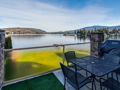 Scenic Lake Whatcom waterfront condo in the desirable Geneva neighborhood. 3 bedroom, 2 bathroom top corner unit with private boat dock and assigned slip. This condo complex is one of a kind with only 8 high-quality units each with their own garage. Updated kitchen comes complete with stainless steel appliances, a wet bar, wine cooler, and Master bedroom with an ensuite bathroom. Cozy up next to the gas fireplace while enjoying views of the Lake or step outside onto your own private deck to soak up the sunshine. Move in ready!