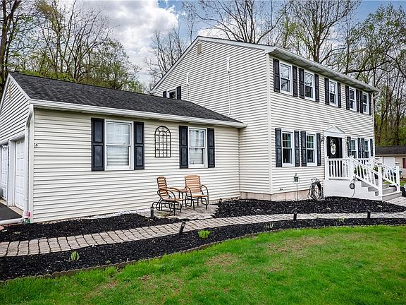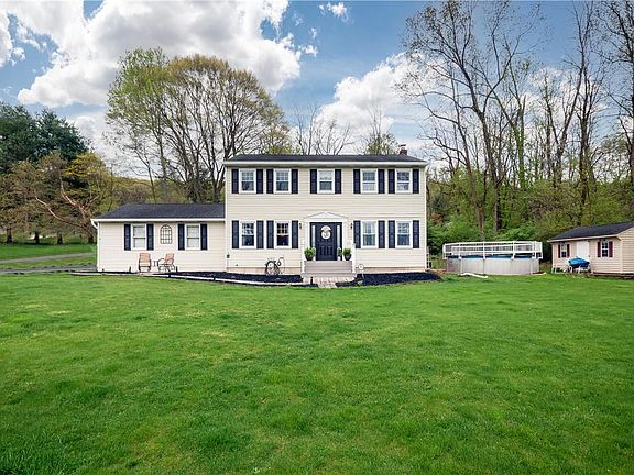 HIGHEST & BEST due by Mon 5/01 at 4pm. Welcome home to this classic colonial located on a partially wooded lot in Lower Saucon Twp. The most enduring feature of this property is its unique setting on a quiet hillside with beautiful views. Sit on the private deck or swim in the pool while enjoying the peaceful sounds of nature. This three bedroom, two-and-a-half bath home offers large modern spaces and an exceptional finished basement space which includes a laundry room and 1/2 bath. This home has been meticulously maintained and loved so that you can settle right in - an updated heat and air system in 2012, roof replaced in 2012, supplemental mini splits installed in the bedrooms in 2016, composite decking installed out back and over front steps in 2017, replacement windows installed in 2021, gutters replaced in 2021, and durable flooring throughout the basement and first floor. Nothing to do but move in, relax, and enjoy!