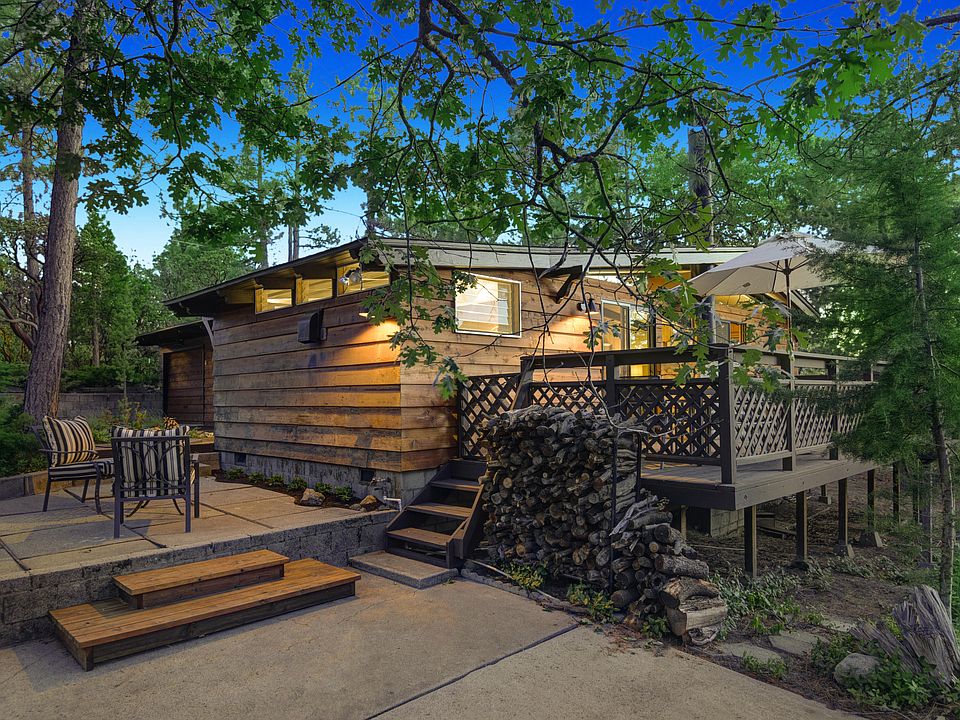 'Deer Crossing Retreat,' a Mid-century Mountain turnkey furnished home with all the bells & whistles! No expense spared in the complete top-to-bottom high-end renovation of this extraordinary mountain home! Post & beam construction with rustic elements are sure to please the most discerning buyer. Tongue & groove paneling has been stripped off, insulated, and reassembled throughout the interior space and all new subflooring, new porcelain tile flooring, doors, windows (including clerestory), exterior siding, electrical, plumbing, LED lighting throughout, tankless H20 heater, & original fireplace restored. Fantastic chefs kitchen with new S/S appliances, cabinetry, artistic tile & counter-tops. Two light-filled en-suite bedrooms with baths featuring floating vanities, frameless shower glass doors & designer tile, plus, a 3rd bath (powder room). Stunning 18,731 fully irrigated forested lot with cross fencing to not disrupt the many deer that make their way through this magical property. Privacy view deck, side patio & large tandem garage with storage. Sale includes all furnishings, housewares, and A/V Electronics. Desirable Saunders Meadow location!
