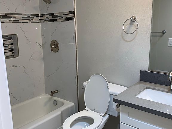 This 55+ (age restricted) home has been Completely upgraded and professionally remodeled. This gorgeous home situated on one of the most desirable streets in the Sun City Community of Menifee. A discriminating tenant will appreciate the finer features this condo has to offer which include a fully remodeled upscale kitchen with new a stainless steel sink, faucet and custom tile mosaic backsplash. The white shaker cabinets with slow close doors and drawers and capped with a beautiful grey quartz countertops that truly sparkle under the new canned lighting. Modern handles and contemporary tile floors complete this masterpiece. The front door opens into a roomy great room with new laminate flooring and 4in moldings and freshly painted in walls and ceilings. The open floor plan has a large lanai, which is bathed In natural light and opens into your private sanctuary complete with a covered barbeque area. The large master bedroom has also been freshly painted and has new laminate flooring and a remodeled bathroom that boasts a new modern style vanity, faucet and tile flooring. The second bedroom with new flooring fresh paint. The and new floors the main bath is grander than the master bath with a ornate tile shower, new quartz vanity, and tile flooring Of course there is a large separate laundry complete with washer, dryer, sink and plenty of cabinets. The one car enclosed garage is roomy abd allows for plenty of storage. For the active adult, the Home Owners Assocation amenities includes: 2 olympic size swimming pools and a spa for relaxing. golf, picnic area, billiard room, club house, work out gym and weights and equipment, common RV parking, Bocce Ball and so much more. This condo is walking distance to the Home owners assocation club. REMEMBER... the landlord pays for the tenant's water, landscaping and sewer charge and all HOA fees which is typically a burden placed on the tenant.. 55 y/o or older age restricted, non-smoking residence...tenant will pay $100/month towards, Water, sewer, landscaping and all HOA Dues and Fees, owner pays the rest (a savings of almost $430 /month. Tenant will have full access to two swimming pools, bocce ball courts as well as weight room dining facilities and theater. Lease duration may less than a year, due to Covid circumstances.