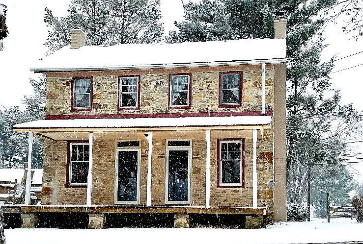 Welcome home to 2679 Blue Ball Rd...A HORSE/FARM LOVERS DREAM on 5.5 acres. Property displays a 3brm/2bth well kept stone Colonial with wood burning fire place, restored wood floor & hot water radiator heaters-8 stall barn-bank barn(over 6,000 sq ft-storage building w one car garage-guest house-1brm/1bth & fenced in ground pool. See beautiful aerial photos in tour. Schedule to view today!