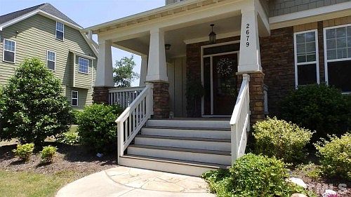 Complete info: http://2679brightonbluffdrive.CanBYours.com - Great Community, Location & Home. LR shares open layout w/ Kitchen & perfect for entertaining. HRDWDS on 1st flr. Sun Splashed Kitchen has WI Pantry, Island, Granite w/Back Splash, 42" cabs, SS Apps & Plantation Blinds. Master Suite boasts WIC, Soaking Tub & Lrg. Tile Shower. 1st flr guest BR w/ full Bath. 2 Additional BRooms & Bonus Room on 2nd flr. Walk Up Attic ready for expansion. Screen Porch & Spacious Patio w/ Fire Ring. Fenced Backyard w/ Zoysia Grass & Water Feature. Krista Abshure 919-753-6518