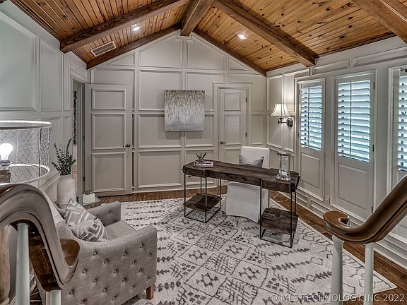 This 1 acre lot sits in the center of Tulsa w/views overlooking the towering trees & lush landscaping. Designed with entertaining in mind, home has several indoor & outdoor living areas. The dramatic entry is open to spacious great room w/FP, wet bar, formal & causal dining & an office w/built in's. The walkout game room has wet bar, gas FP & patio w/trex decking, and fire pit. The master suite has breathtaking views, gas fireplace, dual vanities, dual closets, soaking tub, and a large frame-less shower.
