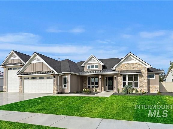 Welcome to "The Collins" by Biltmore Company! This plan features a chef's kitchen with large island, quartz countertops, Bosch SS appliances + double ovens and huge pantry. The great room has a beautiful coffered ceiling and built-ins beside the stone fireplace. A flex space off the entry offers endless possibilities - use it as an office space or den! The primary suite boasts dual vanities separated by a large soaker tub, tiled shower with two shower heads and a 18 ft. long master closet. 1351 SF garage with RV bay offers room for all your recreational toys!