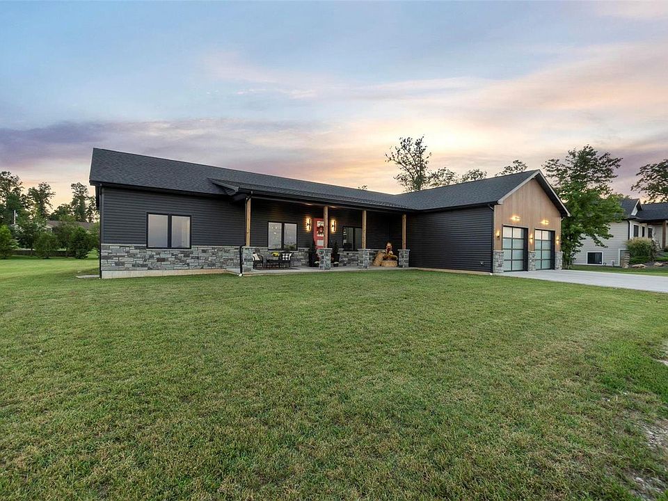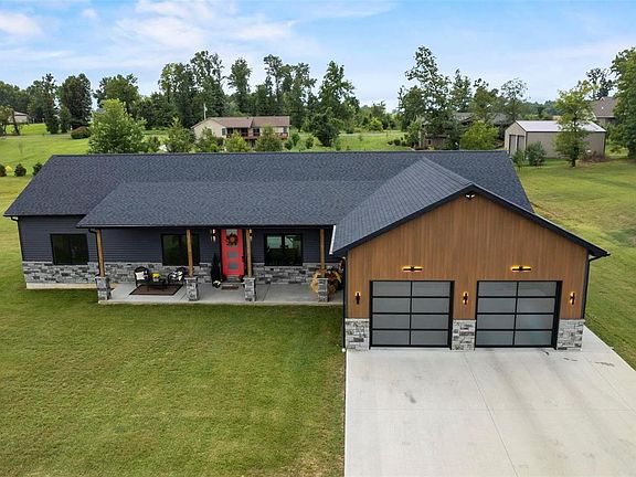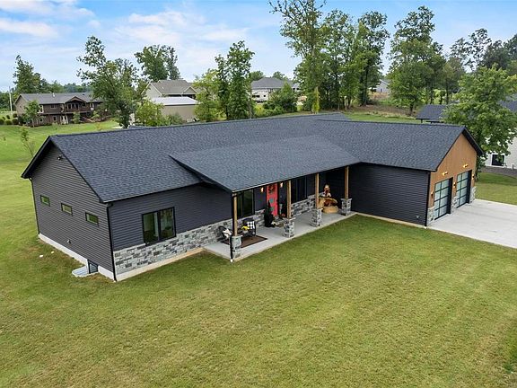This 2-year old one-of-a-kind home, minutes from I-55 or downtown Perryville, will leave you breathless. Upon entering, your eyes will be drawn to the floor to ceiling black-trimmed custom windows. The home is equipped with Lutron Caseta Smart Lighting system throughout & additional home automation features. The vibe of the home is modern yet inviting with custom open shelving, custom cabinetry, granite countertops, & a countertop waste chute. Black stainless appliances, a large pantry, & island with a separate dining are an entertainer’s delight. Main level laundry off the master bedroom closet & a split bedroom floor plan are additional note-worthy amenities. The master bathroom has a custom tiled shower with adjustable rain-shower heads, 2 water heaters & dual sinks. Downstairs find a family recreation room, an additional bedroom & bathroom, & storage with built in shelving. Outside relax on either the front or back covered patios with custom ceilings & modern outdoor lighting.