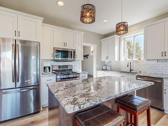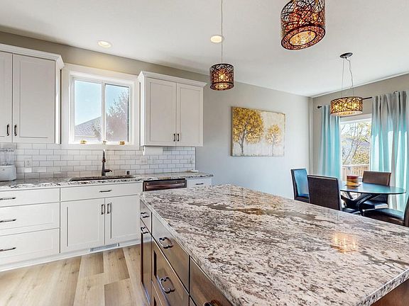 Welcome to this beautiful 1-story home with a fully finished walk-out basement, built in 2016! The main level features brand new luxury vinyl plank (LVP) flooring and an open floor plan with elegant tray ceilings, creating a bright and spacious living environment. The primary bedroom offers a private retreat with a walk-in closet, a tiled shower, and an ensuite bath for ultimate relaxation. With 2 bedrooms on the main level and an additional 2 bedrooms downstairs, there’s plenty of space for everyone. Both levels have a full bathroom, making it convenient for family and guests alike. The basement also features a versatile bonus room, perfect for an office, hobby space, or extra storage. Step outside to enjoy the large deck, ideal for entertaining, with stairs leading to a lower concrete patio in the quiet backyard. A 3-car attached garage provides ample space for vehicles and storage. Situated in a peaceful neighborhood, this home is perfect for those seeking comfort, space, and tranquility.