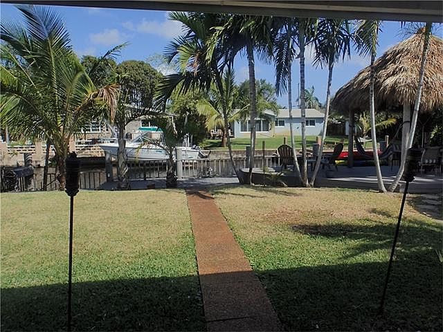 Boaters Dream! Waterfront property with 50 foot boat dock and ocean access. Beautiful 3/2 home with a den that can be used as a 4th bedroom. Above ground pool with a large covered patio and separate deck with an amazing tiki hut, great for entertaining. Hurricane impact windows throughout. Kitchen has SS appliances. Tile floors in the kitchen & dining room. Wood floors throughout the living area,2nd & 3ed bedrooms. Terazzo floors in the master bedroom. Remodeled master bath. See brokers remarks.