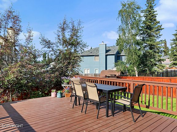 Stunning South Anchorage Huffman Timbers home for sale! 4 Bedrooms plus office. Upgraded back deck, fully fenced backyard, nice landscaping, freshly sealed driveway, office with great built-ins, and gas fireplace. Features an open concept kitchen/living area with top appliances and blinds throughout the home. Big three car garage for all your AK toys. Cherry, pear, apple trees, and berry bushes.Use ShowingTime or call LL to schedule a showing.