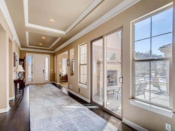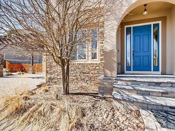 This stunning home is light and bright and has custom finishes throughout! The large yard is professionally landscaped in front and back and perfect for relaxing in the Colorado evenings or entertaining friends. The custom paved driveway and entrance greet you upon arrival. An open entry invites you to the formal living room with fireplace and study with French doors. The Gourmet Kitchen is any cooks dream with oversized working island, and stainless steel appliances. Charming breakfast nook with custom shutters are adjacent to a large Family room with Custom Built in shelving and Plantation shutters. Large windows capture sunlight throughout the home. Multiple outdoor entertaining spaces including a large private deck with fireplace off Dining room and spacious rear deck off back of home. There are Private balconies off Master bedroom and upstairs hall. Upstairs is an indulgent Master Bedroom suite with fireplace, separate sitting room, luxurious master bath, and large walk-in closet. There are an additional 2 bedrooms with jack and jill bath, and 4th bedroom with en-suite bath upstairs as well. A Full finished basement includes a large family room, media room, 5th bedroom, and Custom Library. Only minutes away from the Aurora Reservoir for all your beach and water recreation activities, Southlands Mall with restaurants and shopping, top Cherry Creek Schools and easy access to freeway.