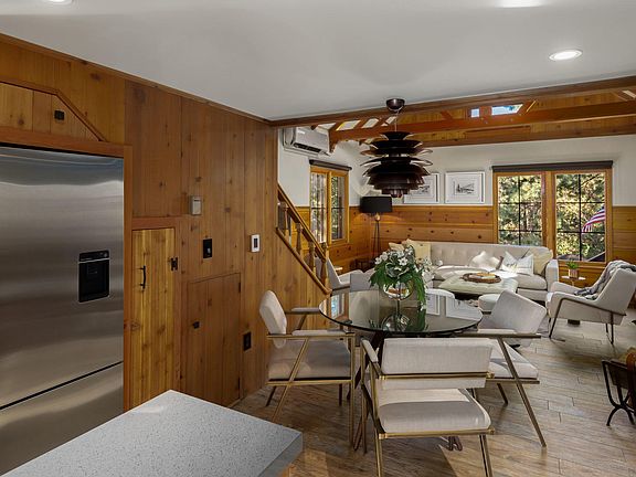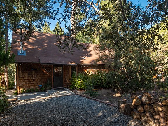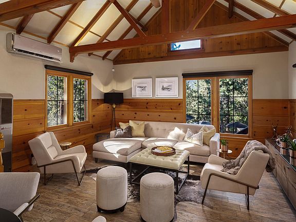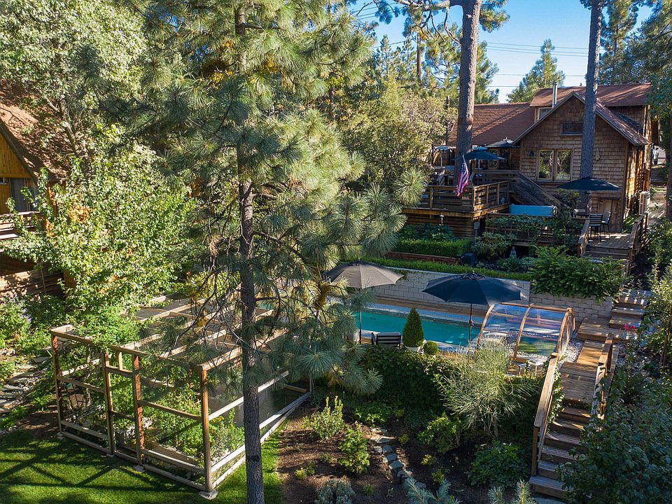 Nestled in the San Jacinto mountain town of Idyllwild, at 5800 ft above the desert-floor and set amongst tall pines, black oaks & sweet cedars is Penny Pines. An architectural Mountain retreat, unlike anything Idyllwild has to offer. A truly unique, one-of-a -kind resort-property located in desirable Saunders Meadow a short distance downtown Idyllwild. A resort home with 2 BD, 1 BA, and Den/Loft for additional sleeping. No expense was spared in the comprehensive, high-end renovation of this extraordinary mid-century mountain home! Built by Architect Clif Russell in 1950 with rustic elements, open-beamed ceilings & unique pocketing windows, the house has heated porcelain flooring, HVAC, tankless H2O, LED lighting, a gorgeous enameled fireplace and many more designer features. A sizeable light-filled master with a nearby designer bath & bijou chef's kitchen with S/S appliances & quartz counter-tops round off the interior. The Magic happens when stepping out onto 1800 SF of multi-level entertaining decks for outdoor dining, conversation, breakfast/lunch, or a soak in your private hot tub. A stunning 12,197 SF irrigated forested & landscaped lot features designer-curated gardens, a croquet lawn, housed organic vegetable garden, and an incredible 30' custom domed salt-water lap-pool for year-round swimming & entertaining. Sold designer turnkey furnished, experience the Resort at Penny Pines & the peace & quiet of Idyllwild.