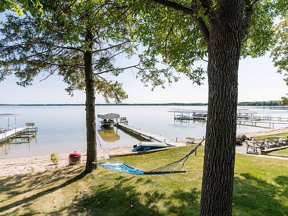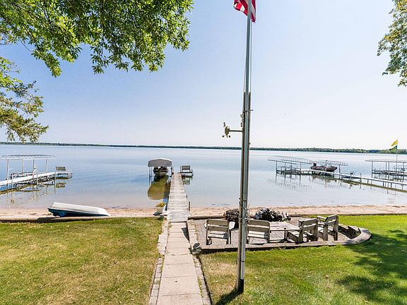 Blanche Lake properties rarely reach the market. This amazing property boasts a sugar sand beach with ideal elevation and the lot is almost 300 feet deep. Sit on the lakeside deck to look out over the water at Glendalough State Park. (No homes on the other side to look at) The remodeled home has 4 bedrooms and 3 bathrooms along with a fireplace, a covered roadside porch and large lakeside deck. It is a beautiful year round lake home. There is an oversized 24 x 44 garage with ample room for toy storage. Come take a look and you will fall in love with all the charm this home has to offer on one of the nicest lots on one of the most coveted lakes!