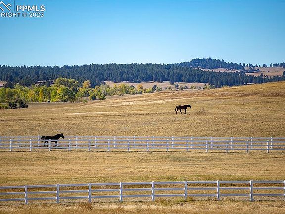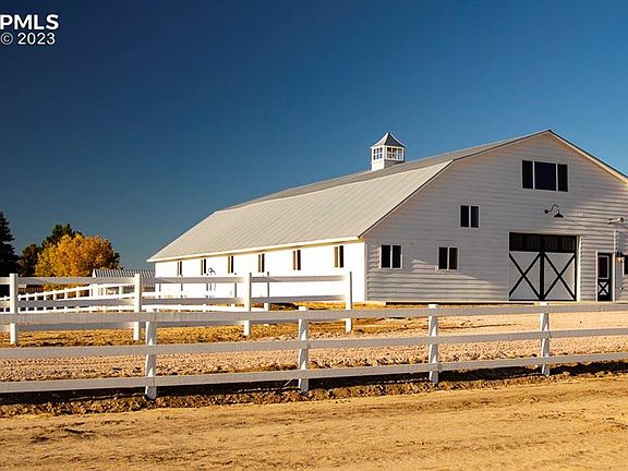 State of the art equine facility on 500 acres. Mix of sub irrigated bottom lands on both sides of Comanche Creek, creek bottom with stands of Cottonwood Trees and rolling hills with native grass rangeland. 158 acres sub irrigated hay ground in Alfalfa. Balance is good native pasture land with scattered pine trees. Several stock water dams located throughout. The terrain around the barns and arena is level. The creek meanders for one mile though the property with live water ponds and springs throughout and good cover. Historic 54 ft by 80 ft gambrel roofed horse barn with a main level welcome center/club house with bathrooms and a kitchen area, offices and six 20 by 12 horse stalls and a wash rack. The upper level, in this historic building is an incredible 1,328 square foot two bedroom. 95 ft by 205 ft indoor riding arena with a stable area with twenty seven 12 by 12 horse stalls, one 24 by 12 brood mare stall, a tack room, wash rack, office and bathroom. Three homes in addition to the apartment. The main home is a recently updated sprawling 2,382 square foot ranch style home with 4 bedrooms and 3 bathrooms and an attached two car garage. The second home is a gorgeously remodeled 2 bedroom and 2 bathroom Casita boasting 1,573 square feet of living space. The third home is a 3 bedroom and 1 bathroom updated home with an attached garage and boasts 1,393 square feet of living space. Two loafing sheds, a shop, a grain bin and hay storage building. 5 wells on the property. Several outdoor riding arenas, warm up arenas, paddocks and cattle working facilities and a set of corrals. Currently operated as a premier horse facility with stalls, arenas and trails. Absolutely ideal for for a trainer, horse breeder, equine club, or riding facility. Also operates as a cattle ranch with enough annual hay for boarding horses or wintering cattle. Any mineral rights convey. Aquifer water rights have not been determined, but are intact and available to do so.