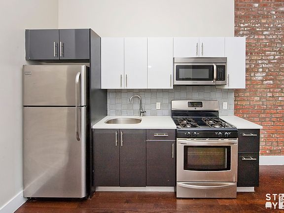 Beautiful Spacious Gut Renovated 3 Bed ,1 Bath Apartment . Prime location! This newly renovated apartment has a bold yet comfy design thanks to its stunning touches with its exposed brick walls, high ceilings and hardwood floors. This gem contains 3 Spacious Bedrooms equipped with plenty of closet space and The bathroom is spacious and features a sleek and modern look with custom finishes and custom cabinetry Central Air conditionner This beauty features as well a large separate kitchen with top of the line stainless steel appliances and a built-in microwave completed with granite countertops. The large living room is bathed in lots of natural sunlight. Laundry room facilities on site. The locations is optimal minutes away from the Eastern Parkway/Kingston Avenue Subway Station and the 2,3 and 4 trains. 1.5 Months. free. , Gross. rent. $2700