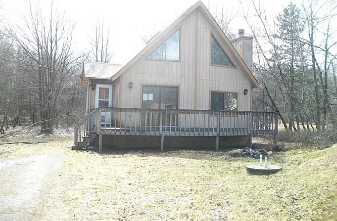 Handyman Special, 3 bedroom, 2 bath, Chalet offering master bedroom with private bathroom and sliders to private deck. Sunken living room with stone fireplace. Nice size deck off of the kitchen area. This one will not last!