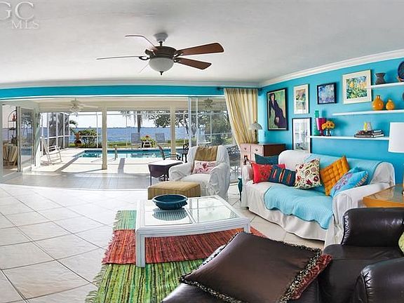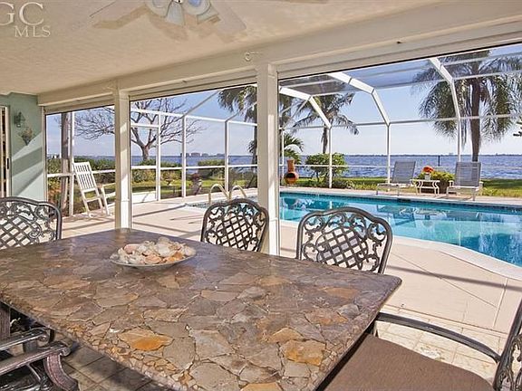 Drive down the an avenue of Royal Palms to the prettiest street in the Cape. Enter through leaded glass french doors and be greeted by the sunny contemporary great room interior with skylights, oversized light tile floors and the incredible 1.6 MILE,Southern,RIVER view through 20 ft of pocketing sliding glass.This coastal charmer in addition to its open great room, has a cathedral ceiling family room with french door entry and sliders to pool and best of all a wall of glass windows to view the everchanging blue river and tropical scene. This home has been lovingly updated over the years and recent additions include new family room a/c, new rear roof. The cheery white kitchen with aqua pool backsplash looks over the granite serving bar right to the river and pool area. You can be part of it all the family action from here. Large master retreat and bath also with tile floors and tub with a river view!Spacious 10x38 lanai and large pool area,great for the annual xmas boat party!