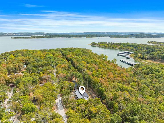 Weekend getaway lake home that's been recently remodeled! Located in Branson West down desirable DD Hwy, this lovely furnished lake cabin has the most amazing screened in front porch and you can WALK TO THE LAKE just across the street (boat ramp too!). The cabinets are beautiful hickory and the tile flooring throughout makes cleaning and maintenance a breeze. The detached metal garage is perfect for storing lake toys and the golf cart is included (sidexside extra $). Several third party slips available nearby.