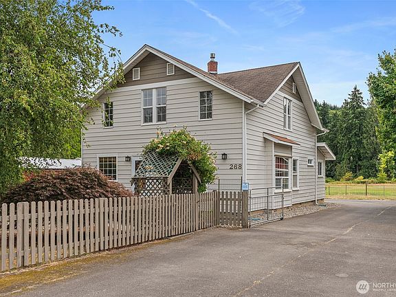 Beautiful, immaculately maintained modern farmhouse beside a fish-bearing creek! Stunning hemlock millwork throughout preserves old-world charm. Dream kitchen with quartz counters, SS appliances, and ample storage — the heart of the home! Barn, stalls, and fenced pasture for horses, goats and a tidy chicken run. Tractor storage and dedicated workshop space. Two separate parcels offer potential for a compound or multigenerational living. Finished outbuilding with 3" drain—ideal for a home business or future ADU. Enjoy trout and steelhead fishing or kayaking steps from your door. Fruit trees, blueberry bushes, & room to garden for the green thumb. Brand new roof. Truly one of a kind — don’t miss it!