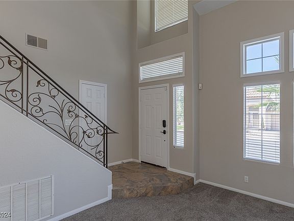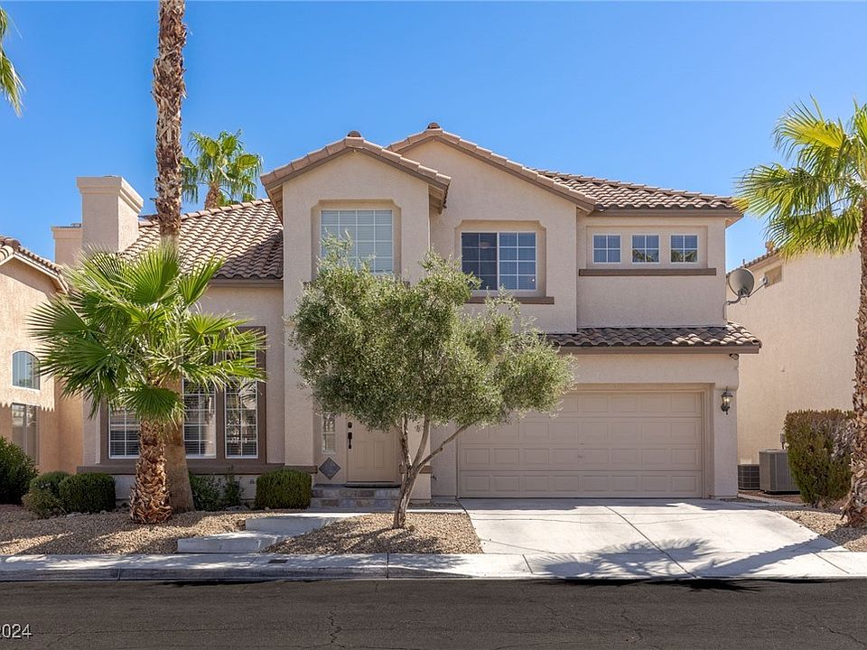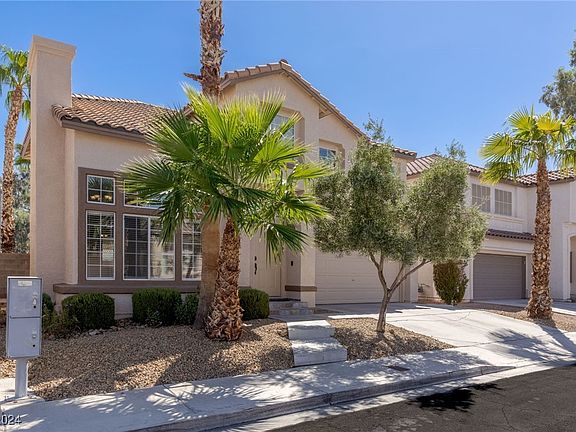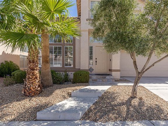 This beautifully remodeled home boasts fresh two-tone paint, new carpeting, refinished cabinetry, and updated landscaping. Offering 3 bedrooms and a spacious second-floor loft, this residence is perfect for modern living. The kitchen features elegant granite countertops and stainless steel appliances, while ceiling fans are installed throughout for added comfort. Enjoy the cozy ambiance of a fireplace in both the formal living room and the primary suite, which also includes a luxurious primary bath with a Roman tub. Additional conveniences include a washer, dryer, and refrigerator, as well as garage storage cabinets. Step outside to a covered patio and a private putting green, perfect for outdoor relaxation. The home is located near a community park and is just minutes away from schools, parks, shopping, dining, and major access points like the 215 freeway, Green Valley Ranch Resort, and The District. This home combines style, comfort, and convenience in a prime location.