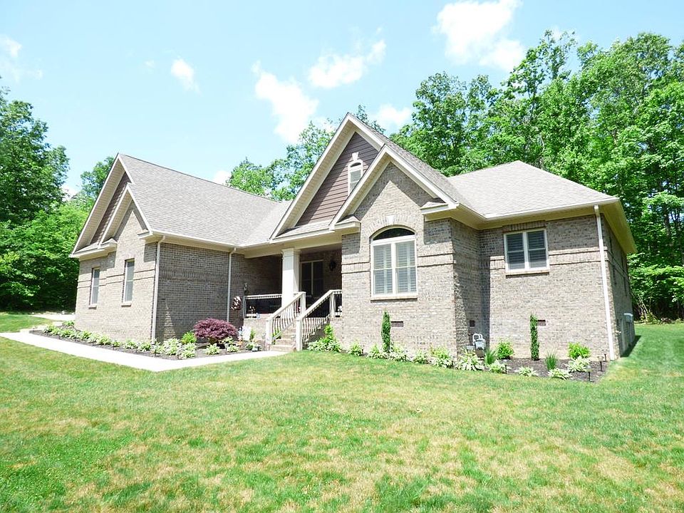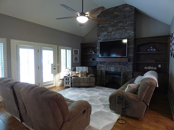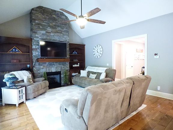 Secluded 4 bedroom/3 bath brick home. Living room boasts a vaulted ceiling, gas fireplace flanked by bookshelves & access to the deck. Kitchen has granite countertops, custom cabinets, ss appliances, large pantry & breakfast bar. Spacious master is tucked away on one side of the home for privacy & has a trey ceiling, 2 wi closets & bath with dual vanities, wp tub & tiled shower. Large bonus room.