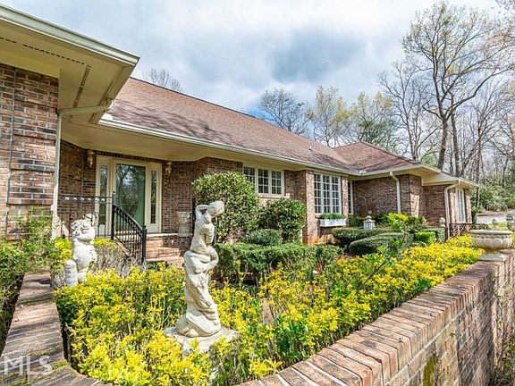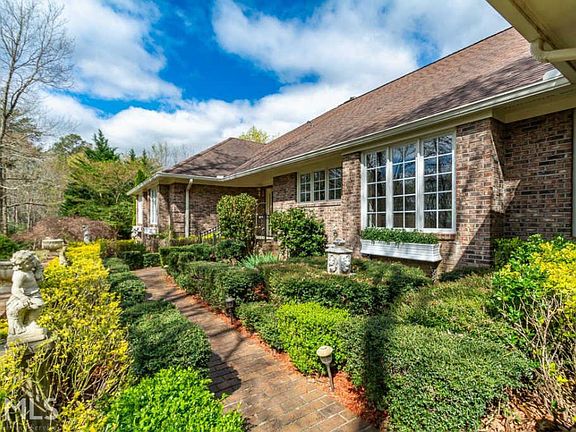 STUNNINGLY CHARMING 4-SIDED BRICK RANCH ON NEARLY 7 ACRES + SEASONAL YONAH MOUNTAIN VIEWS + CREEK FRONTAGE...Greeted by the front gate and the English courtyard to the front doorway makes the GRAND entrance to this beauty EXCEPTIONAL! Formal foyer entrance into the SPRAWLING living room featuring gas fireplace, hardwood floors, and WET BAR = entertainer's dream! SPACIOUS Chef's kitchen with an abundance of cabinetry, GAS cooktop, DOUBLE oven, island with seating, breakfast area, PLUS built-in desk, perfect for homework or computer space! LARGE formal dining room off the kitchen makes entertaining a breeze! Windows GALORE PLUS skylights in the solarium to enjoy the true beauty of nature in your new backyard, PLUS access to the back covered porch that leads to the outdoor fire pit! MASSIVE BONUS/media room featuring floor-to-ceiling stacked stone, gas fireplace, exterior access, PLUS LOADS of room for pool table, ping pong table, fuse ball table, AND space for furniture and television, making this room a potential main hang out! GLORIOUS Master retreat featuring trey ceiling, COZY gas fireplace in sitting room = space for private office or reading room, French doors to back covered porch, AND private en-suite with HUGE walk-in closet, double vanity, and walk-in shower! Two AMPLE-SIZED guest bedrooms sharing the 2nd full bathroom with double pedestal sinks and tub/shower combination. Outside oasis with seasonal mountain views of Yonah Mountain, year-round flowing creek, outbuilding providing extra storage, multiple garden areas, and garden shed. A TRUE must see!