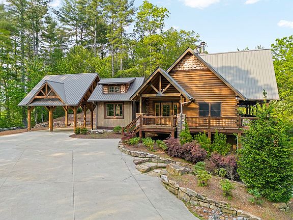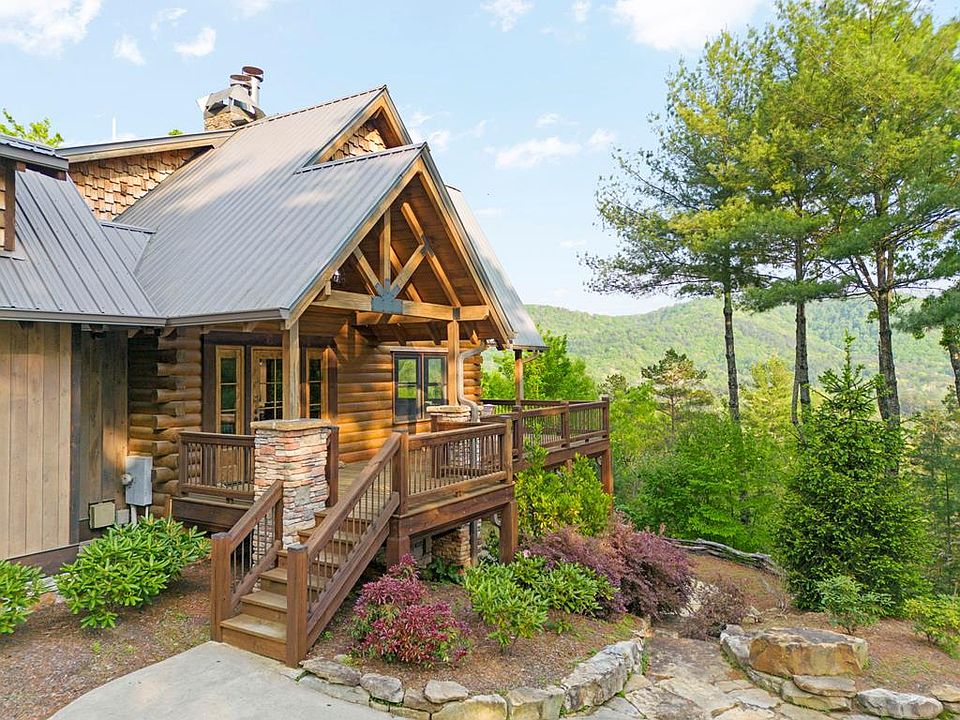 This Gorgeous Rustic RENTAL Cabin offers STUNNING LAYERED MTN VIEWS and is conveniently located just minutes away from Downtown Blue Ridge and Ellijay. With 3 bedrooms and 3.5 bathrooms, this cabin provides ample space for comfortable living. Stainless steel appliances bring a modern touch to the kitchen, while the 100-year-old barn time ceiling and cedar shakes maintain the authentic feel. Additionally, you'll find rock countertops, hand-hewn floors, and custom barn doors that add to the rustic charm of the home.The outdoor living space of this cabin is truly remarkable, with a 2-story gazebo featuring an inlay compass, perfect for entertaining guests. The wrap-around deck allows you to enjoy the beautiful scenery at any time of the day. The cabin also boasts a private gated entrance with a concrete drive, ensuring both security and convenience. A boulder retaining wall adds to the custom design, making this home truly unique and impressive. Don't miss out on the opportunity to own this stunning Rustic Cabin with its wow factor.