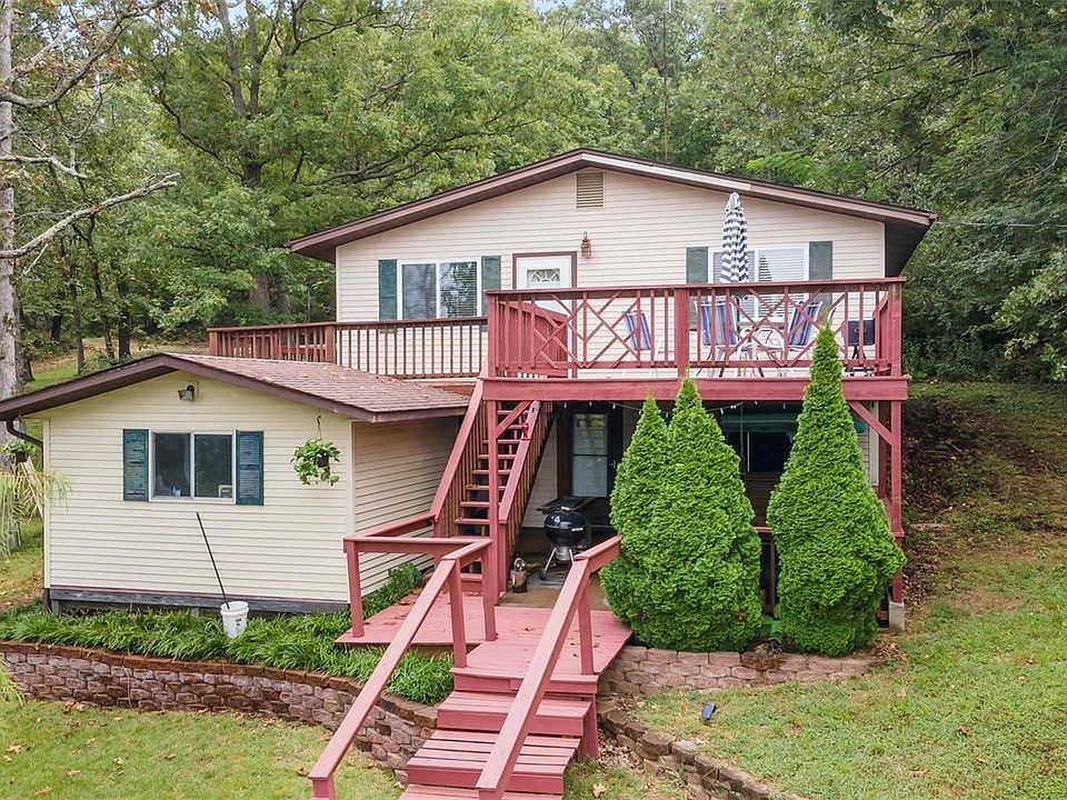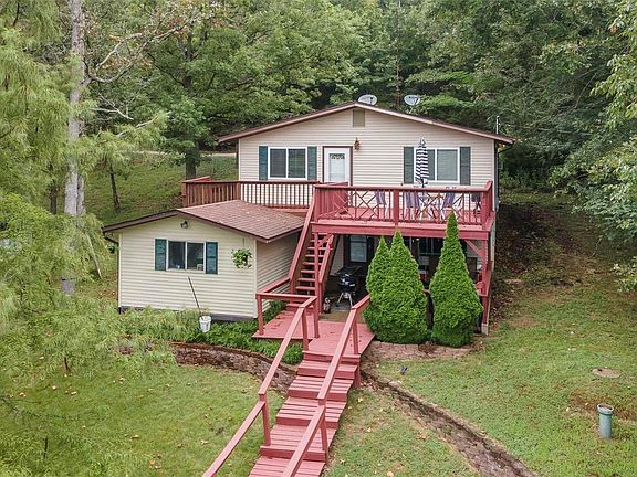 Welcome to your serene retreat in the gated lake community of Lake Kah Tan Da! This home offers stunning lake views year round, perfect for those seeking tranquility and natural beauty. Perched on a hill off the road, you’ll enjoy privacy and space from neighbors. Featuring 2 bedrooms, this property provides comfortable living space. It’s a fantastic opportunity for a get away or full time lake living. Bathroom was recently remodeled with a tiled shower, vanity and flooring. Open living/dining/kitchen is great for gathering and features a wood stove. The family room in the basement walks out to a patio. Utility shed is ideal for all your lake toys. Sunsets on the deck will take your breath away. Enjoy the three 40 acres lakes, pavilions, trails, beaches, hunting, fishing, boating, 4 wheeling and swimming. Entertain guests or keep this gem all to yourself. Here’s your chance to live it big at the lake! All furniture will stay.
