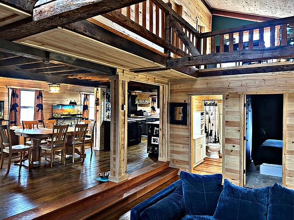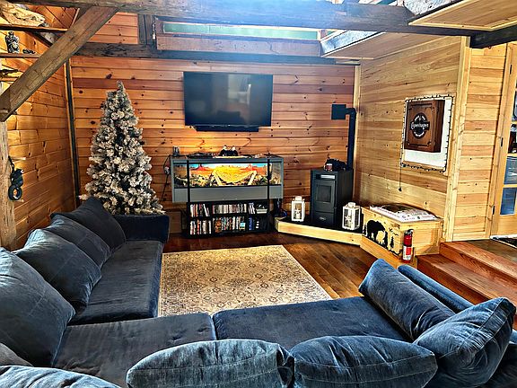 The seller has put in an extensive remodel with a brand new heating system (efficient propane Rinnai and pellet stove) new plumbing, and a pine interior. The mudroom has a built in bench with storage, and houses the washer/dryer.. There is a nice easy flow from the custom kitchen into the sunken living; perfect for entertaining. There is a 1st floor bedroom and full bath, and direct access to the bonus room that could be your new attached greenhouse!