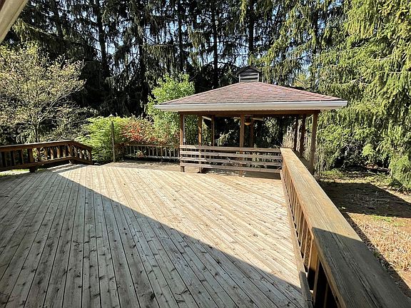 Meticulously cared for all brick Ranch home! This home is located off the main road in a private setting. An open and bright space greets you as you enter the home with 3 bedrooms, 2 full baths, large living room dining combination and kitchen on the first floor. Peaceful view with ample outside entertaining area including large deck, covered gazebo with electric and privacy fence. Lower level has 4th bedroom, 3rd full bath, laundry room, and large family room. Oversized 2 car attached garage.