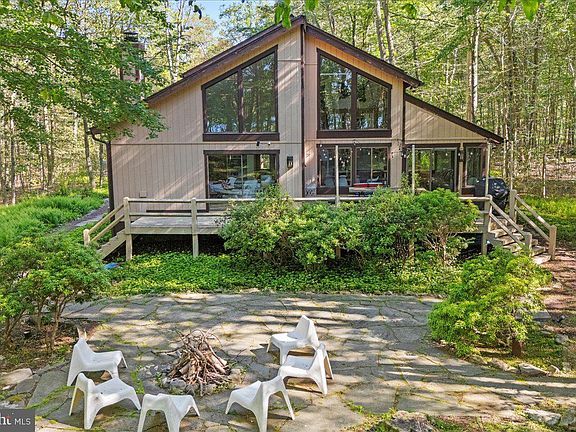 ASK HOW TO RECEIVE A 5,000 LENDER TOWARDS CLOSING COST OR BUY DOWN POINTS. Introducing a serene Retreat, Steps from the Lake. at 268 Conestoga Trail, nestled within the tranquil surroundings of Pocono Pines, PA. This 2,900 sq ft residence offers modern living combined with natural beauty and exclusive lake access, making it a coveted home for both relaxation and recreation. The property features three beautifully appointed bedrooms and two full bathrooms. The master bedroom, conveniently located on the main floor, includes a full bath and laundry facilities, ensuring convenience and accessibility. On the upper level, you will find two spacious bedrooms, a shared full bath, and an open loft area, perfect for a home office or family room. Central to this home's charm is its bright and airy open floor plan, which includes a large Great Room with a cozy wood-burning stone fireplace. Adjacent to this, the dining area flows seamlessly into a sunlit kitchen, making it ideal for entertaining. A delightful sunroom offers panoramic views of the lake, providing a perfect spot to unwind. Stepping outside, the stone patio features a welcoming fire pit, ideal for evening gatherings, while the spacious deck presents a prime vista of the sunrise and sunset over the lake. The home's design maximizes the infusion of natural light, particularly through the large floor-to-ceiling windows that frame stunning lake views. Located in the gated community of Timber Trails, homeowners benefit from top-tier amenities including a 9-hole golf course and the nearby Tall Timber Beach. Outdoor enthusiasts will enjoy easy access to canoeing, kayaking, and swimming activities at Lake Naomi & Timber Trails. With its recent updates and prime lakeside positioning, this house promises a lifestyle of peace and leisure. Enjoy the comfort of modern living in a natural setting, where each day feels like a vacation. Whether it's sipping coffee on your deck or enjoying a quiet evening by the fire, 268 Conestoga Trail offers a unique and enchanting living experience. Offered for sale, this home awaits its new owners who are looking for an escape to lakeside serenity. You also have the option to book a stay and see for yourself just how beautiful it is, inside and out.