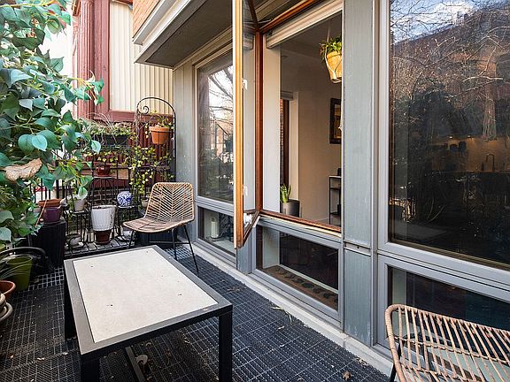 Welcome home to your very own 1,190 square foot duplex CONDO with a flexible layout and front garden space! On the top floor, you'll find an open kitchen with stainless steel appliances (including a dishwasher), quartz countertops, and plenty of cabinets, as well as plenty of space for a large dining room table and living room furniture; there's also a full bathroom; coat closet and excellent light through four floor-to-ceiling windows. Trot downstairs and find a large king-sized bedroom with a half bath and laundry closet with stackable W/D. Three windows provide natural light through into the bedroom through a light well. Right off the stairs is an additional room perfect for a home office or guest room.